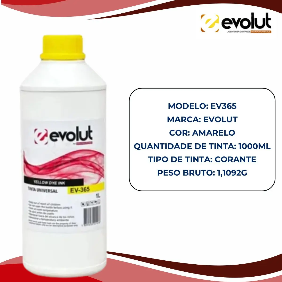 TINTA UNIVERSAL HP/EPSON EV365 AMARELO 1 LITRO – EVOLUT
